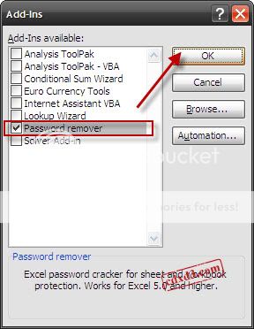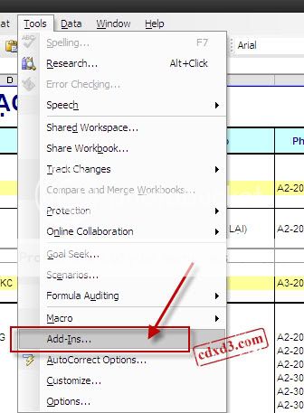 - Để xóa Password đó, ta cần một Addins để thêm vào Excel 2003.Sau đây là chúng ta cho nó Loading lên, bằng cách truy cập vào nó.